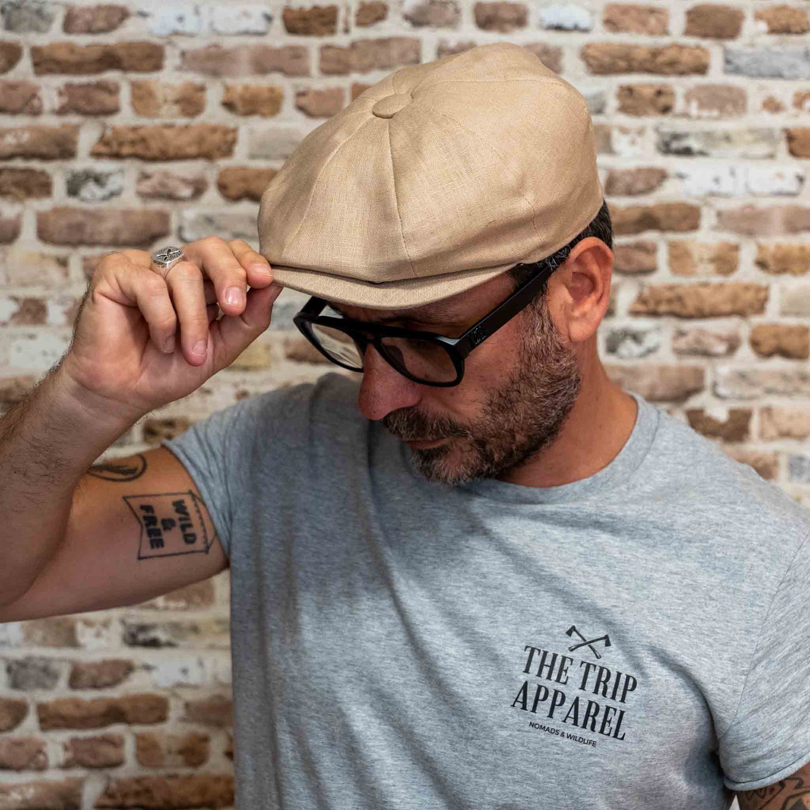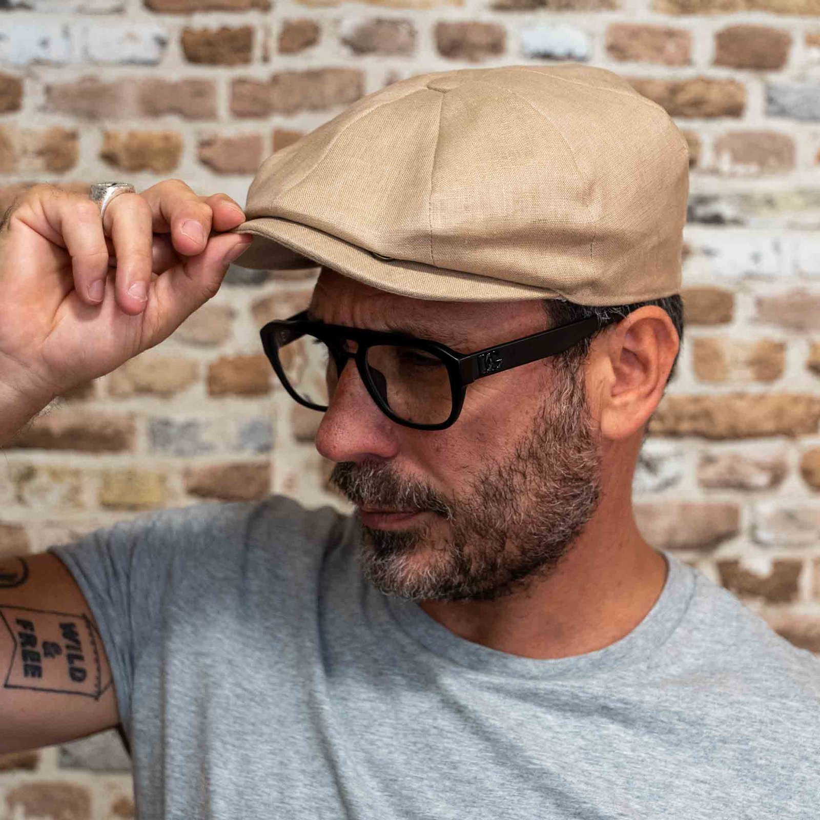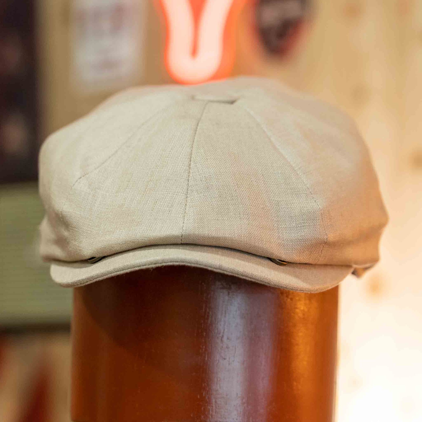 Nuestra newsboy cap BERLIN está hecha en lino 100%, un tejido natural y transpirable que la convierte en la compañera ideal para los días de sol.